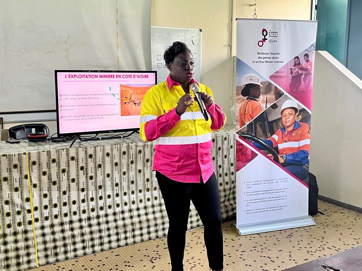Nous œuvrons à promouvoir l’équité des genres dans le secteur minier en relevant les obstacles et apporter des solutions concrète qui permettront de renforcer la prise en compte du genre dans la gestion et les activités des entreprises minières en Côte d’Ivoire.
